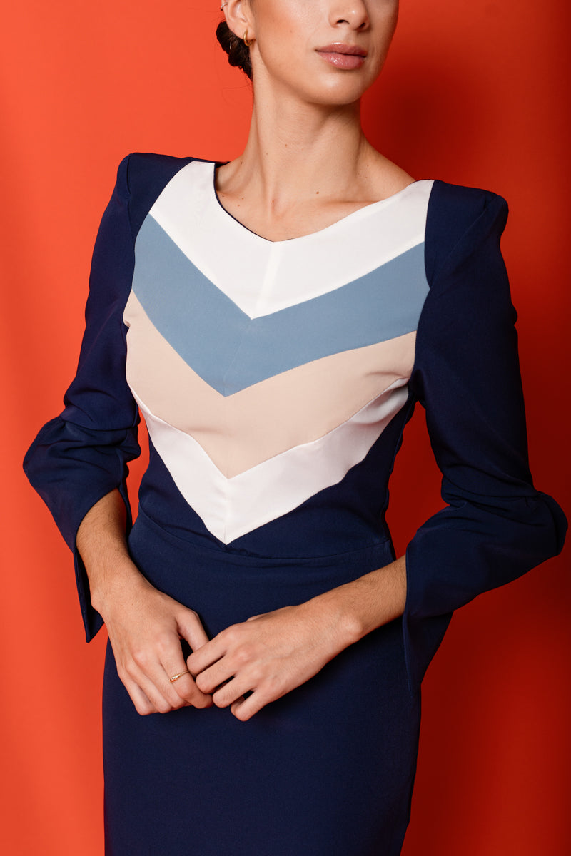 Elegante vestido en color tendencia para esta primavera, con escote en detalle de espiga y manga tulipán hace de este precioso vestido un indispensable para estos eventos de primavera, Moda joven diseñada y confeccionada en España con tejidos de calidad.